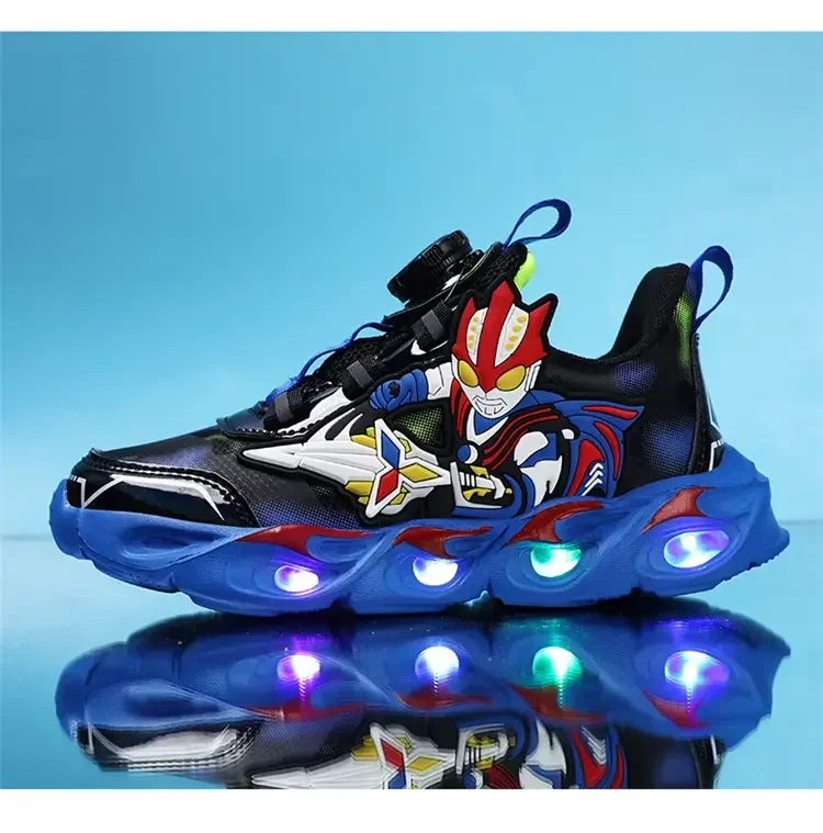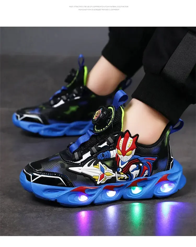 Boys Girls Sneakers Boots LED Footwear Luminous For Kids Light Button Lock Laces Shoes Cartoon Children's Baby Kids
