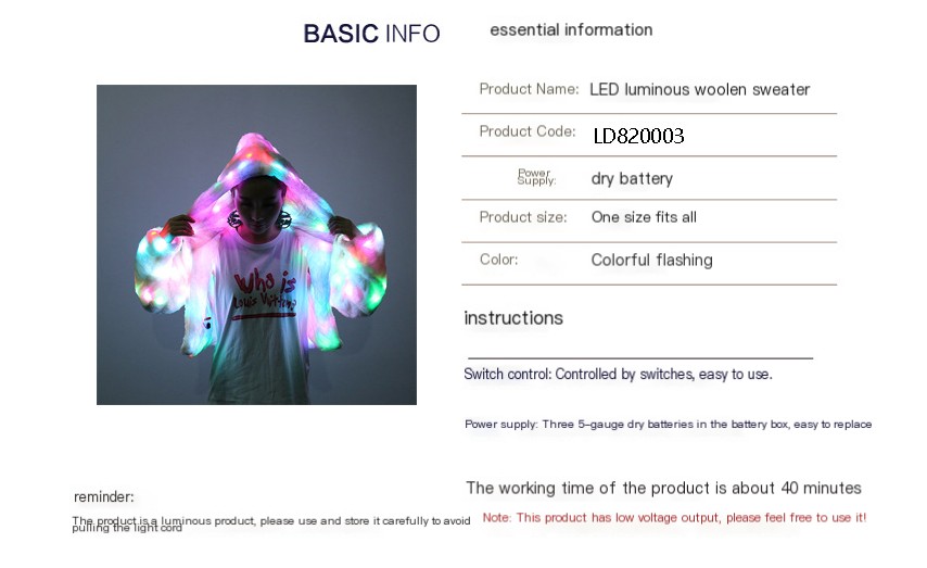 Step into the spotlight this Halloween with our stunning Colorful LED Lighting Clothes Jacket. This eye-catching piece not only showcases a festive design but also adds a vibrant glow that will make you the star of any celebration.