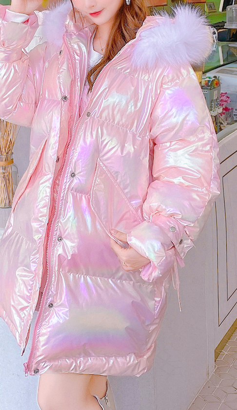 Introducing our stunning Colorful Shell-colored Down Jacket featuring a luxurious large fur collar. This jacket is the perfect blend of style and comfort, designed for the fashion-forward individual who appreciates quality and elegance.