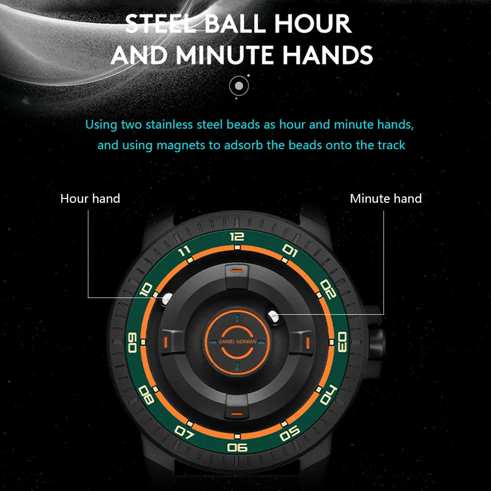 DANIEL GORMAN Magnetic Driven Watch Fashion Waterproof Quartz Watch with Black Silicone Strap Copper Case Beads Pointers DG0221