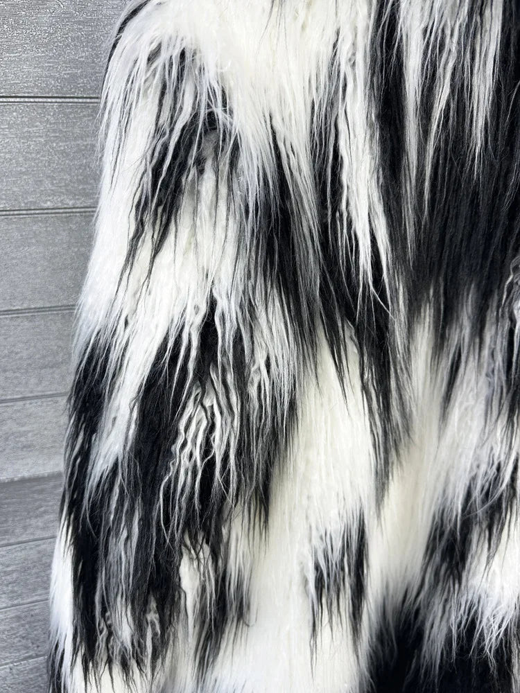 DEAT 2025 Winter New Items Imitation Colorful Long Coat For Women Faux Fur Suit Collar Long Sleeve Trench Jacket Female 11A05577