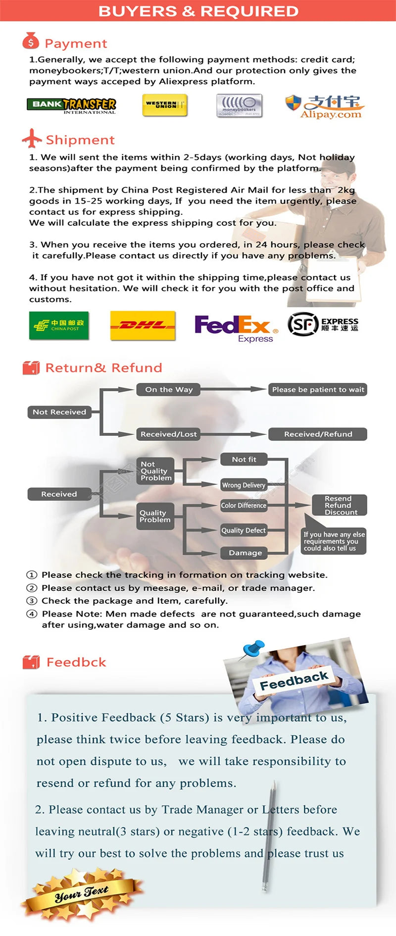 5. If you receive any problems with the product, please feel free to contact me, I will solve for you