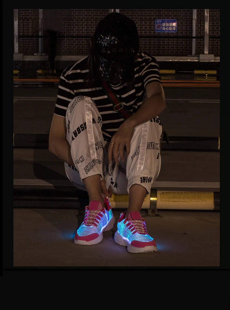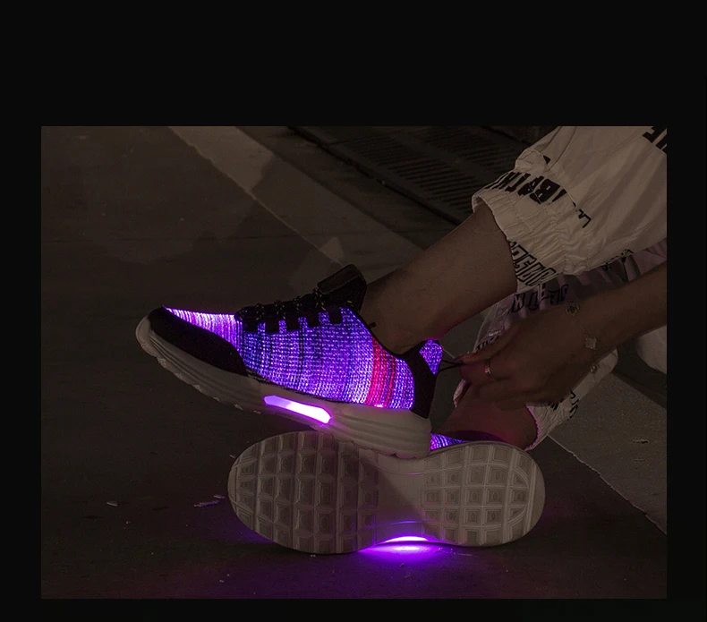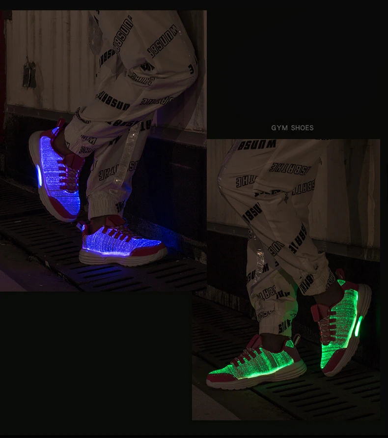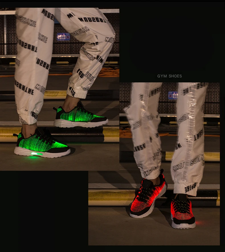 Men Fashion LED Shoes Light Up Sneakers USB Recharging Fiber OPTIC Cloth Elastic Sole Glowing Luminous Flashing Casual Shoes