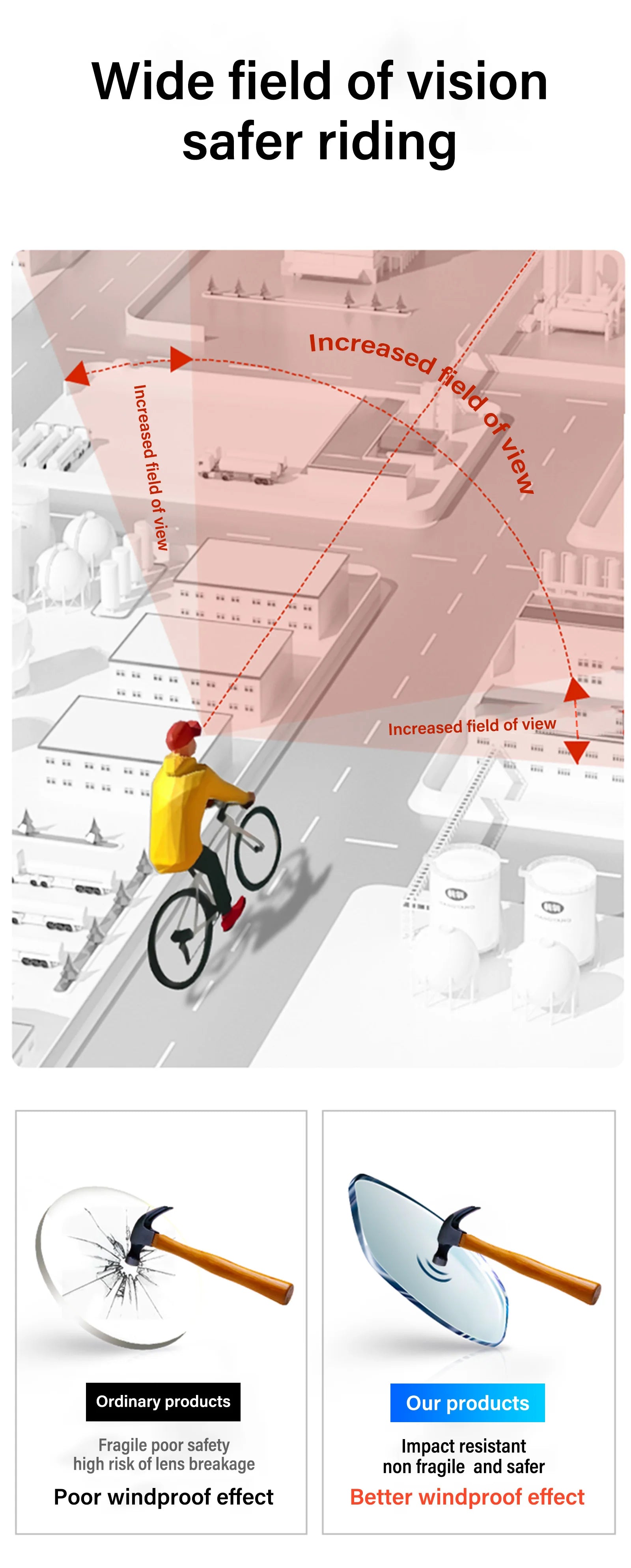 The frames and lenses are unbreakable, so you can buy them without risk. If there is any problem with our cycling sunglasses, please feel