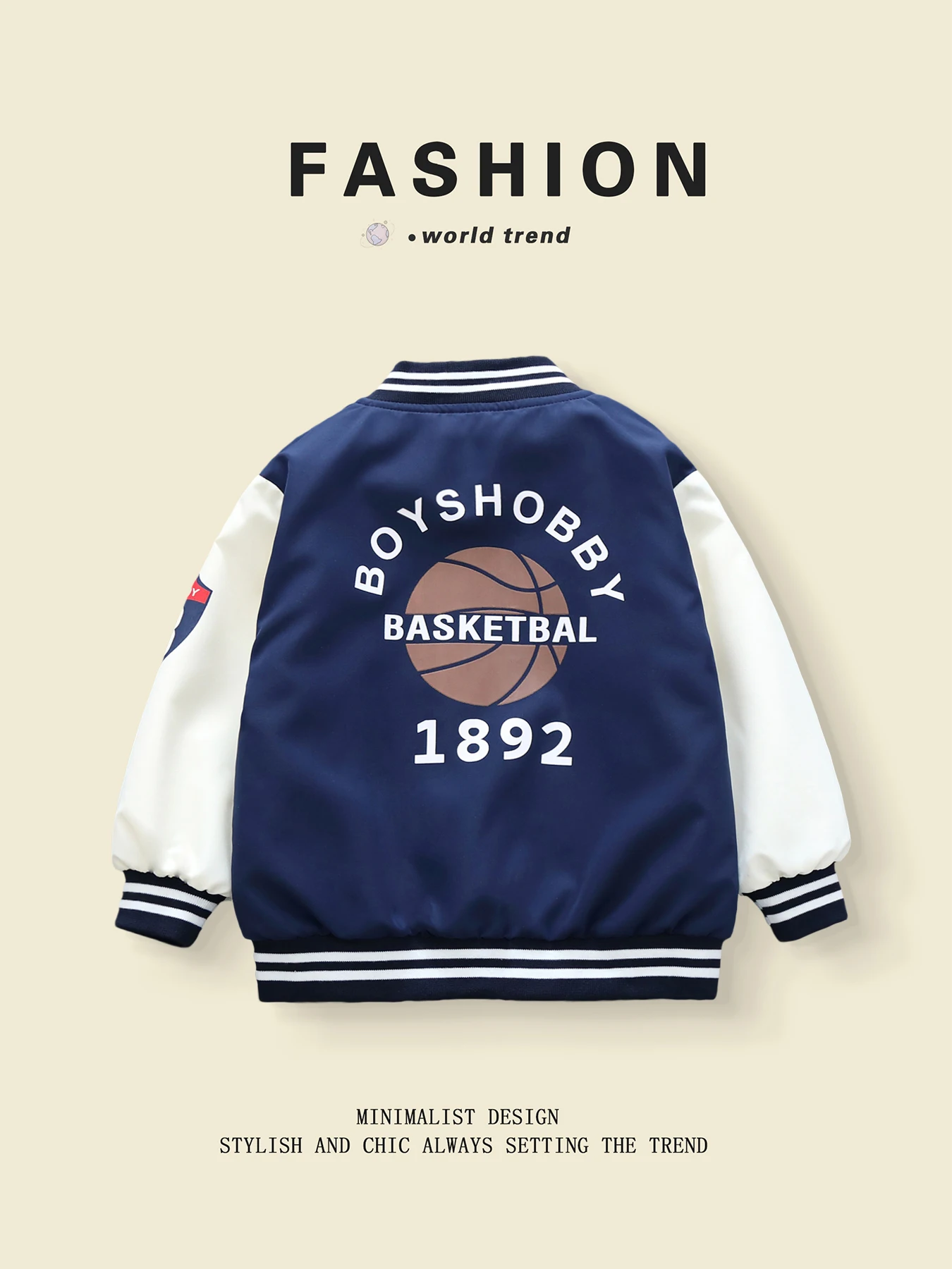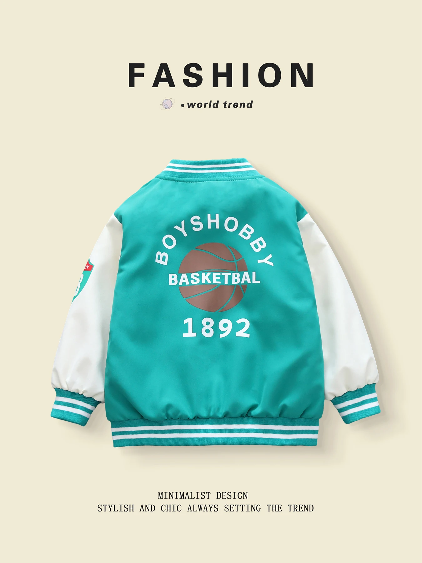 Spring - Autumn Boys' Baseball Jackets with Basketball Pattern, Suitable for 3 - 10 Year Olds, Unhooded Style